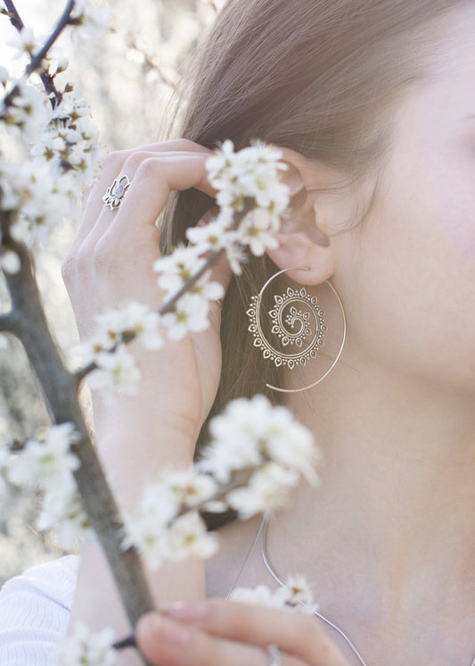 mini hoop earrings with flower pattern made of silver or silver-gold plated