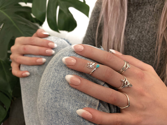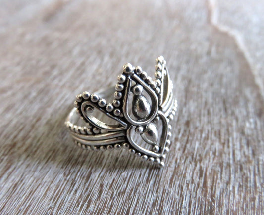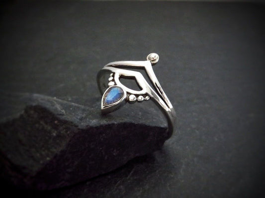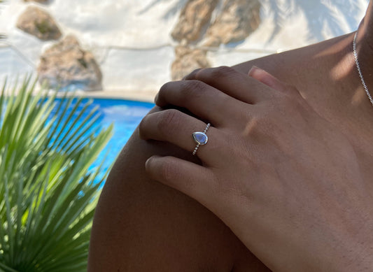 Ball ring made of 925 silver with a teardrop-shaped stone