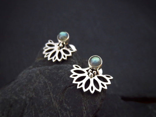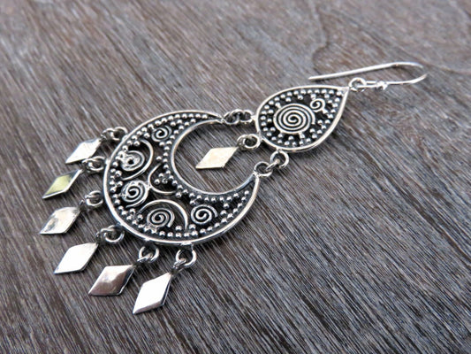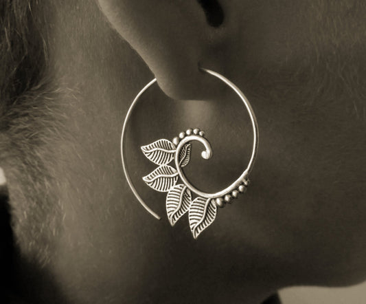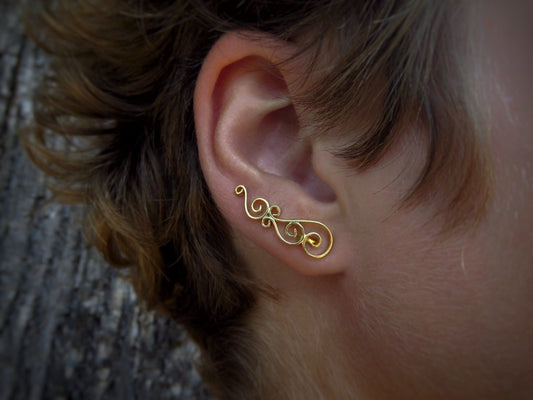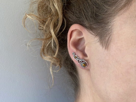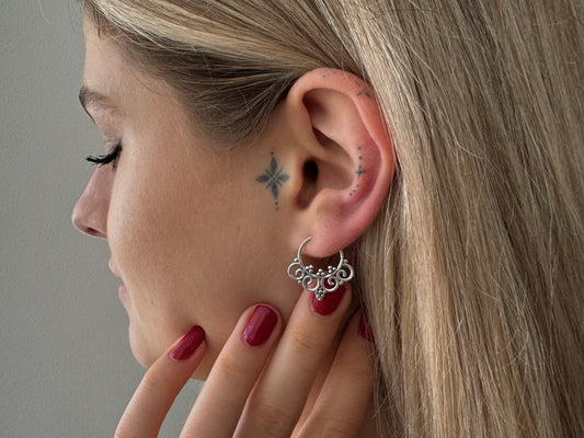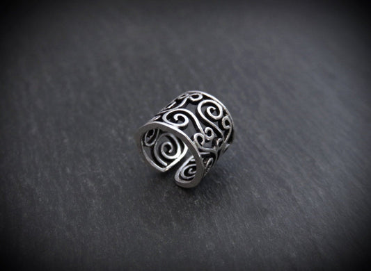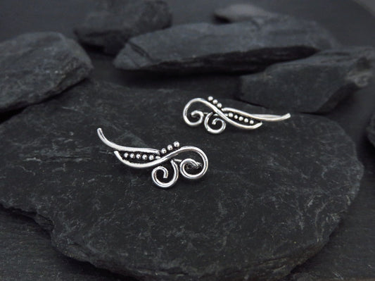 Ohrclip mit Spiralen und Pünktchen aus Silber, Ohrschmuck ohne Loch, Ohrmanschette