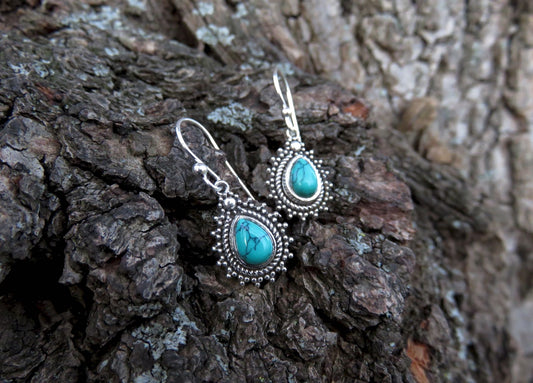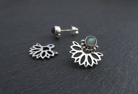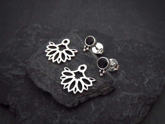Ohrclip mit baumelndem schwarzem Stein in Tropfenform, Silber 925