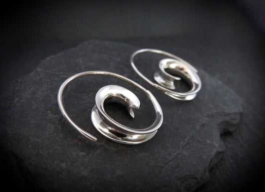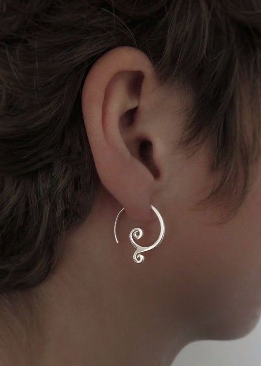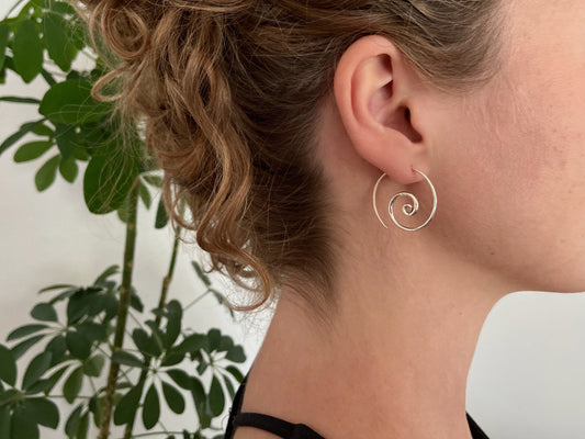 Ohrclip mit zwei großen Spiralen aus Silber, Ohrmanschette