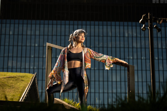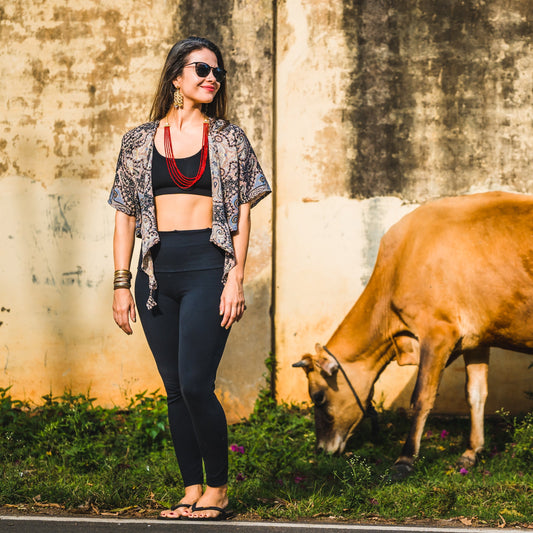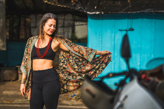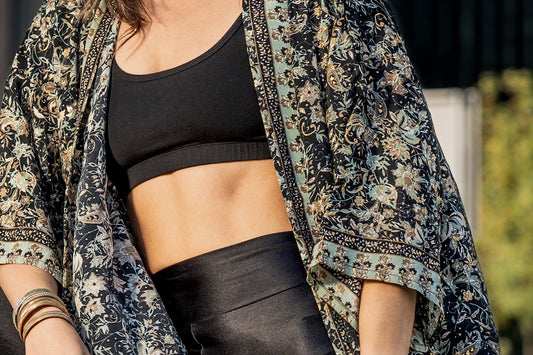 black colorful patterned kimono, blouse, cover-up, light jacket