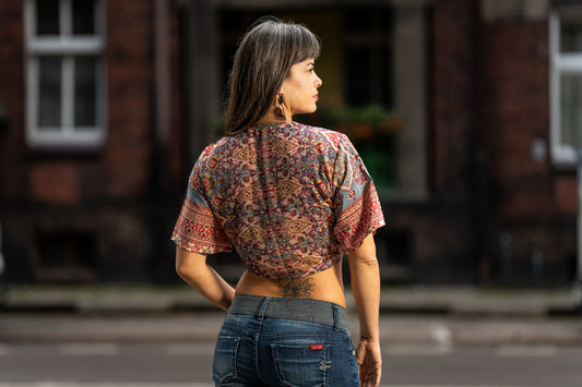 kurzer Kimono zum Binden, Bluse, Sommerbluse, Überwurf, rot rosa gemustert