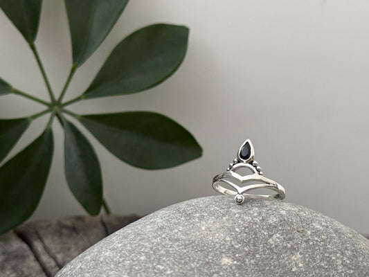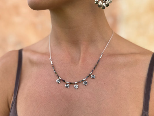 Kette mit 5 kleinen Spiralen und schwarzen Spinell Steinen, 925er Silber, längenverstellbar