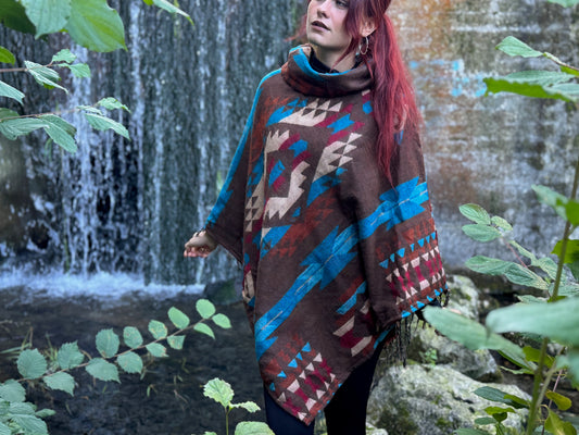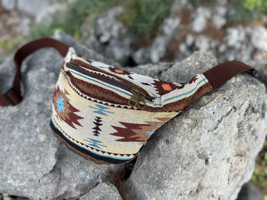 praktische Bauchtasche mit Reißverschluss und geometrischem Muster in braun beige blau