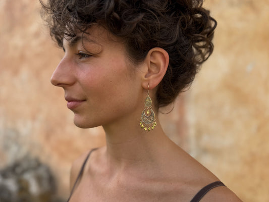 Creolen mit Mondzyklus und Pünktchen aus Messing