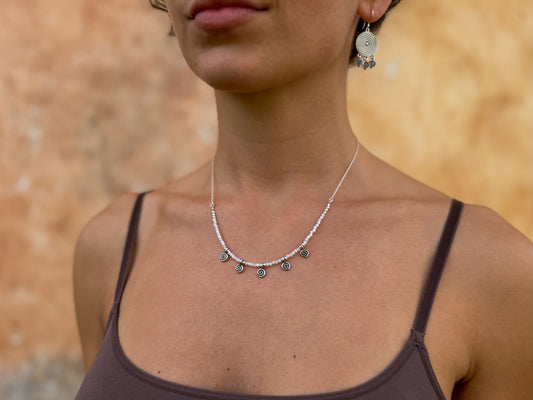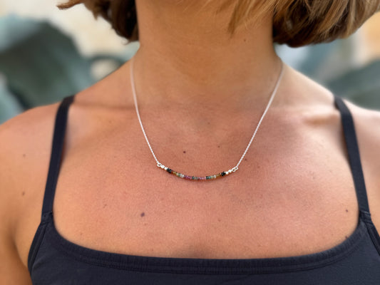 Kette mit 5 kleinen Spiralen und echten Turmalin Steinen, 925er Silber, längenverstellbar