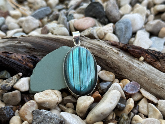 Unikat, großer, ovaler Anhänger aus Silber mit Labradorit Stein