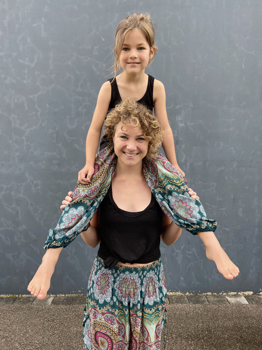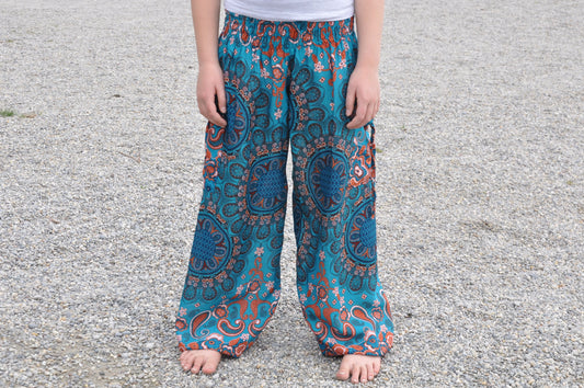 gemusterte Pluderhose mit Mandalamuster in blau türkis für Kinder