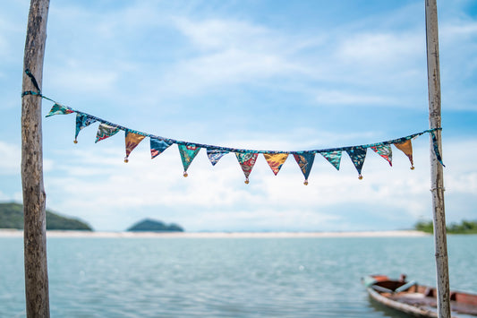Mini Blumen Wimpelkette bunt mit Glöckchen
