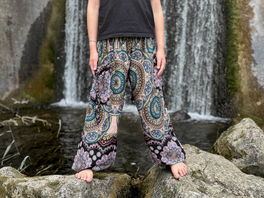 luftige Pluderhose mit Mandalamuster in rot/rosa/blau