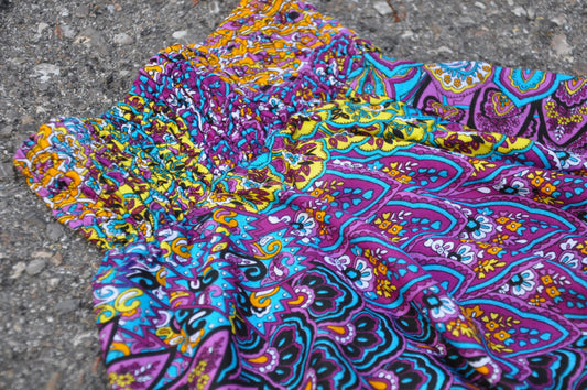 beige blau lila gold gemusterter Kimono, Bluse, Überwurf, leichte Jacke