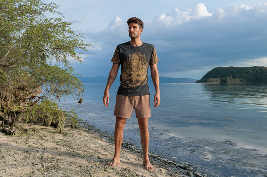 Sak Yant Muay Thai Tattoo Yantra T-Shirt grau beige Tempel