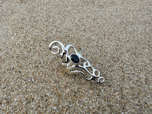 verschnörkelter Silber Ring mit Spiralen und schwarzem Stein
