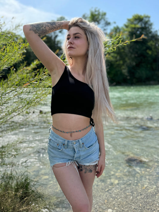 zweireihige Bauchkette mit türkisen Steinen und kleinen Silberperlen