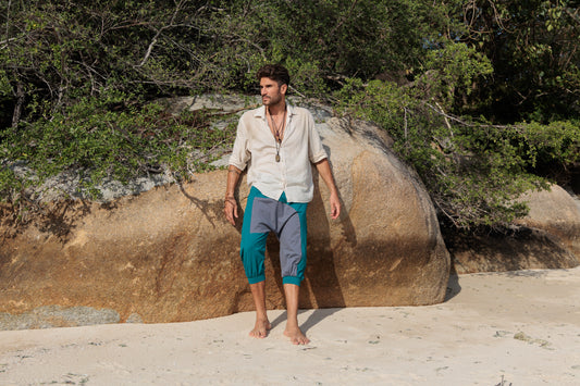 Männer 3/4 Pumphose in türkis/grau
