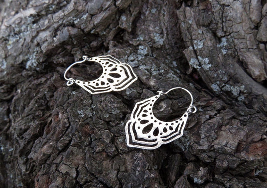 kleine floral gemusterte Creolen aus Silber