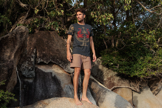 Sak Yant Muay Thai Tattoo Yantra T-Shirt grau beige rot Krokodil