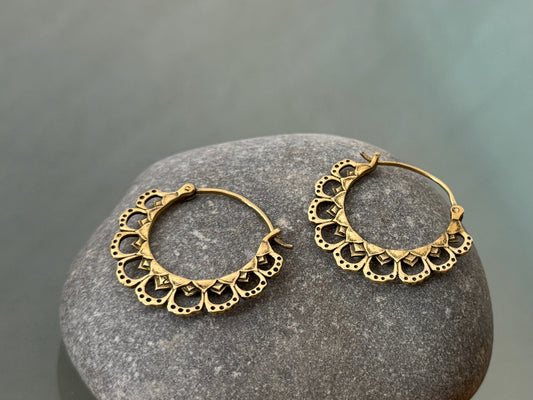 filigrane verspielte Hängeohrringe mit baumelnden Rauten aus Messing