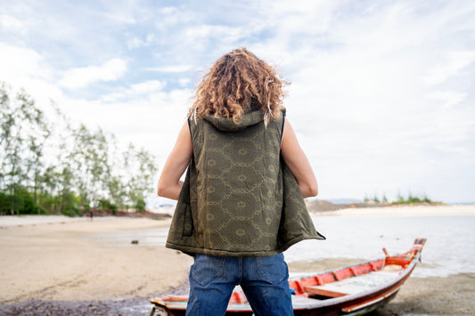 gefütterte Männer Kapuzen Weste in olive grün/ schwarz