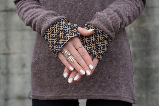 Batik Yoga Top mit dem Muster der Lebensblume in braun schwarz