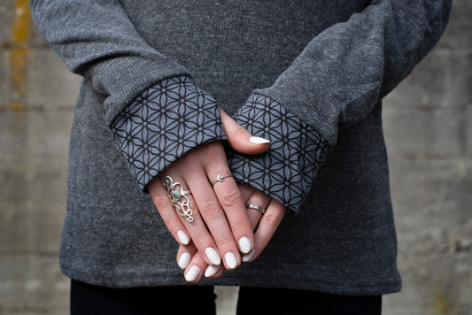 Batik Yoga Top mit dem Muster der Lebensblume in grau schwarz