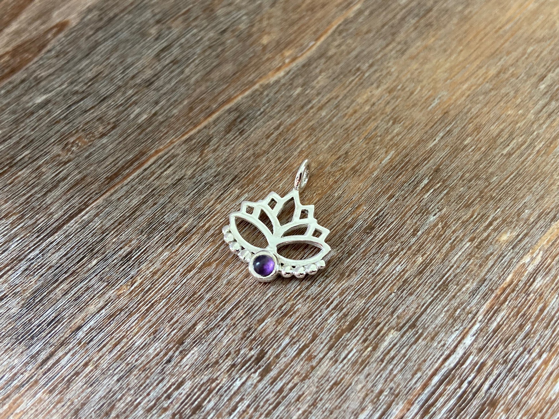 Anhänger Lotusblume mit Amethyst Stein und Pünktchen aus Silber