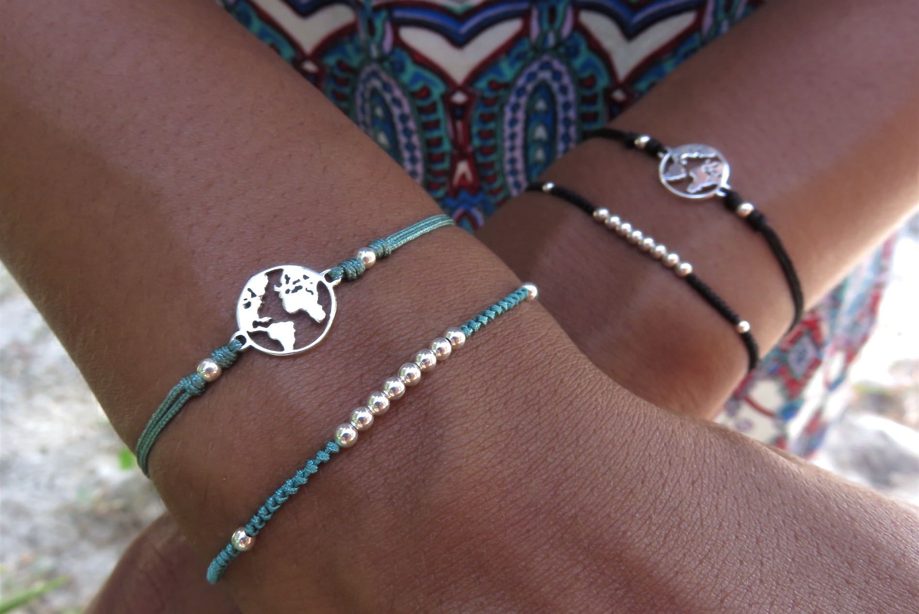 Armband Set Weltkarte aus Silber in schwarz oder türkis