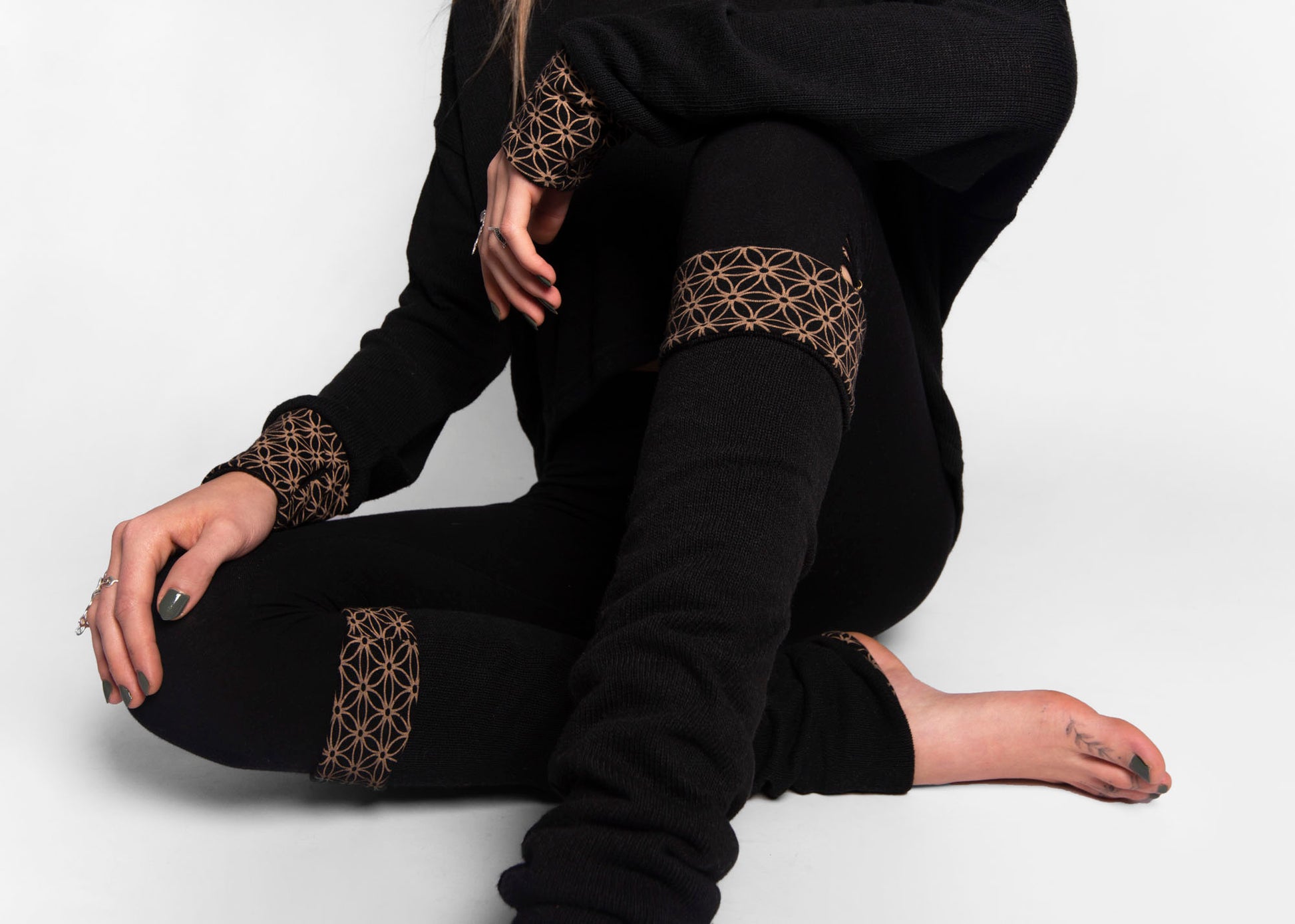 Beinstulpen zum Wenden in schwarz, Stulpen, Yoga Stulpen, Gamaschen, Beinwärmer.