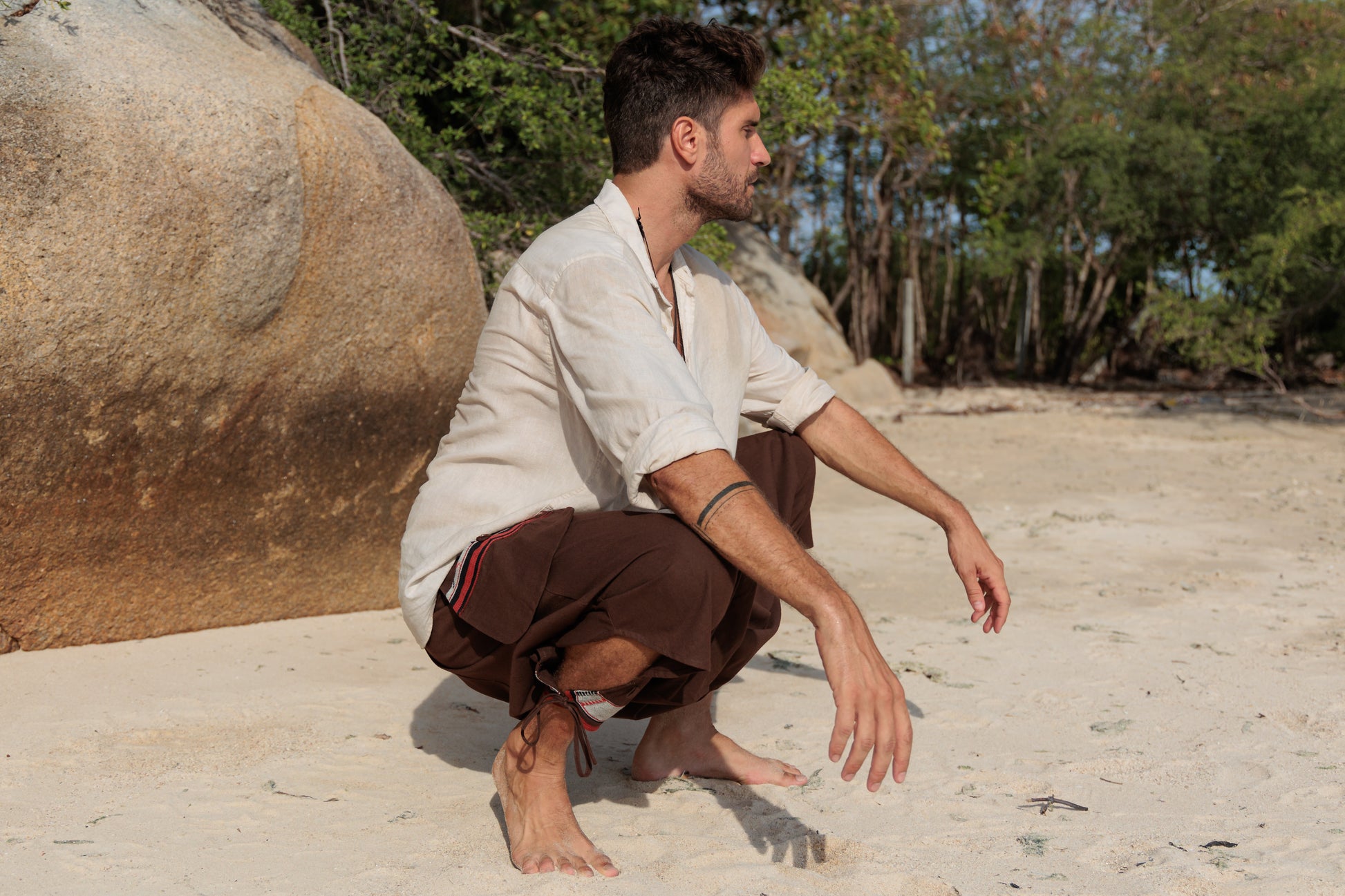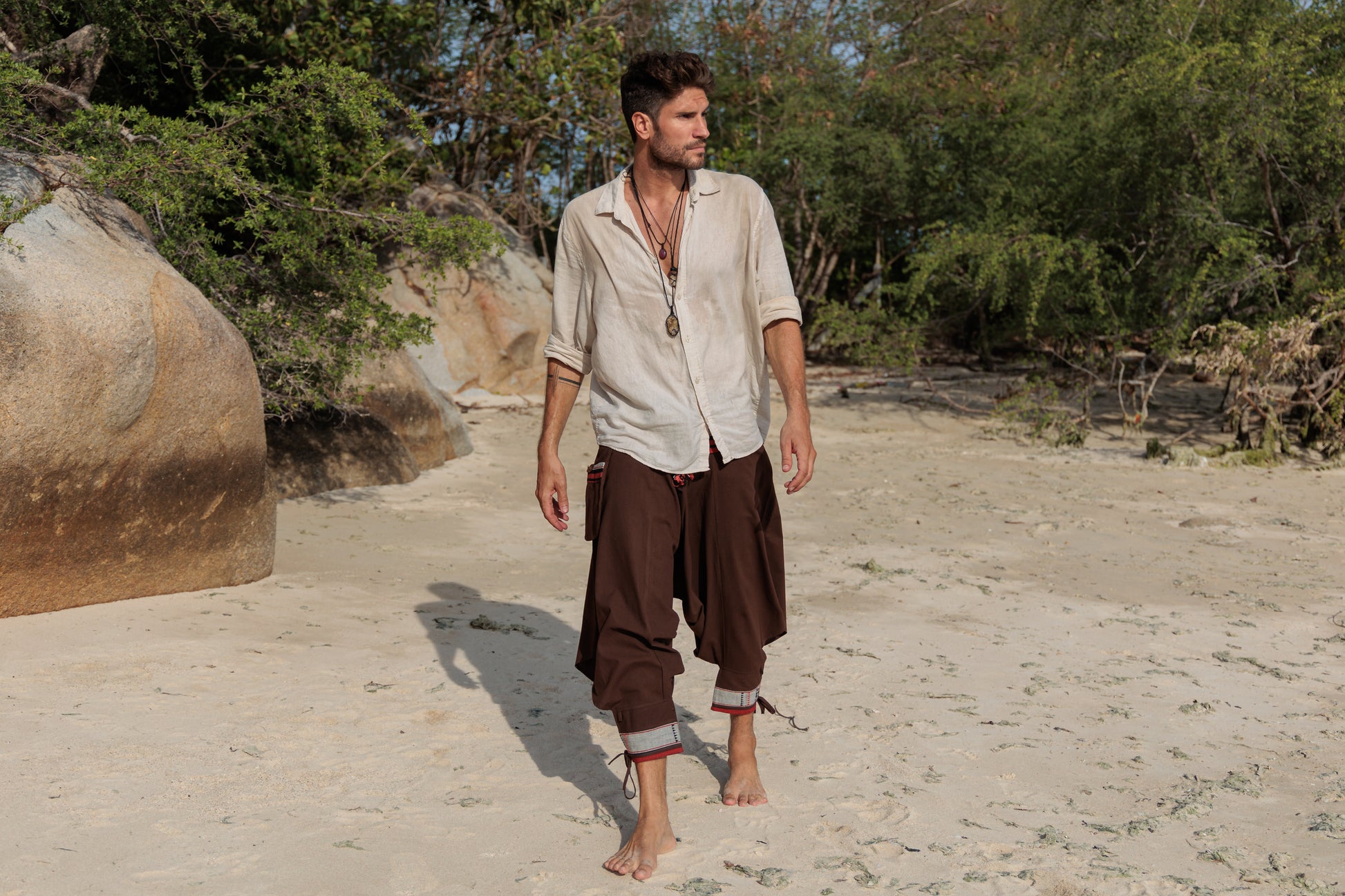 bequeme Hmong Hose für Männer, braun einfarbig, Haremshose, unisex