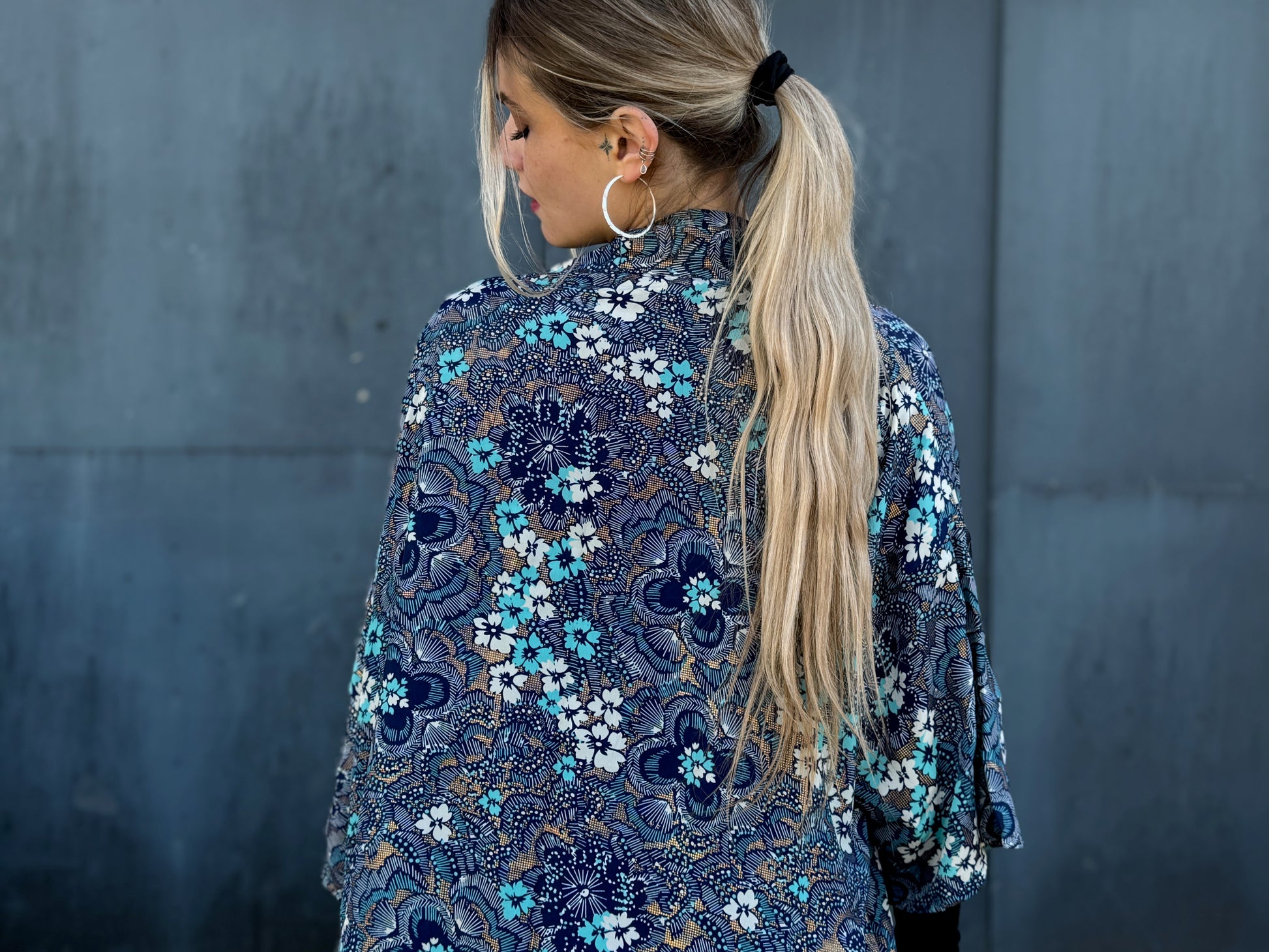 blau floral gemusterter Kimono, Bluse, Überwurf, leichte Jacke
