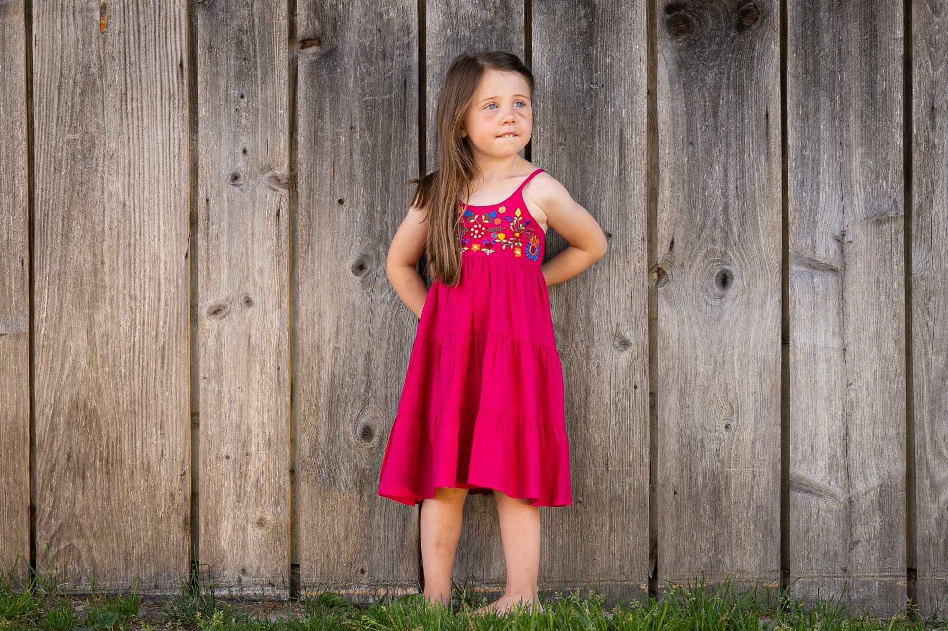 bunt besticktes Blumenkleid für Mädchen in pink.