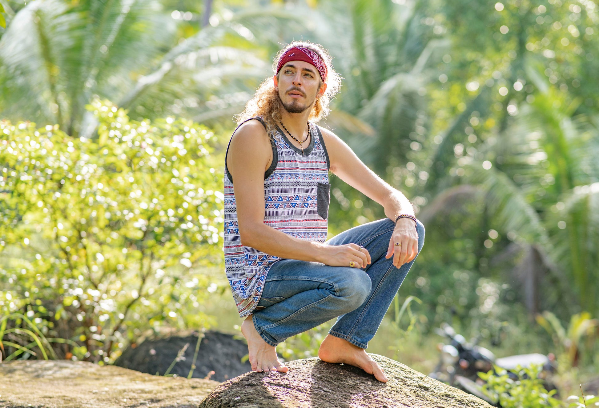 bunt gemustertes Tanktop mit Brusttasche für Männer im lässigen Look, Männer Shirt, Yoga Shirt, Sommertop, Tank, Männertop