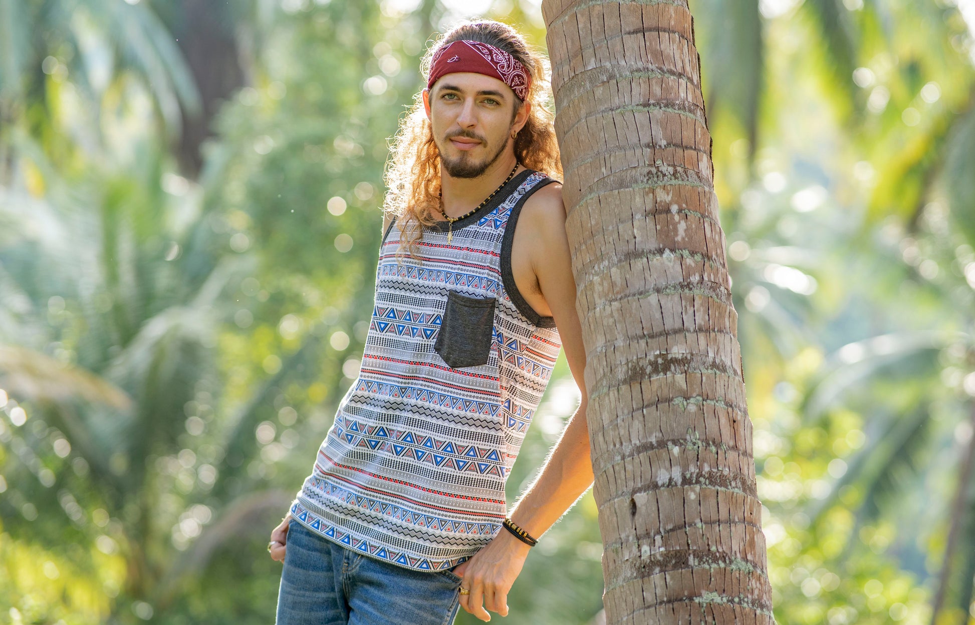 bunt gemustertes Tanktop für Männer mit Brusttasche in rot weiß blau