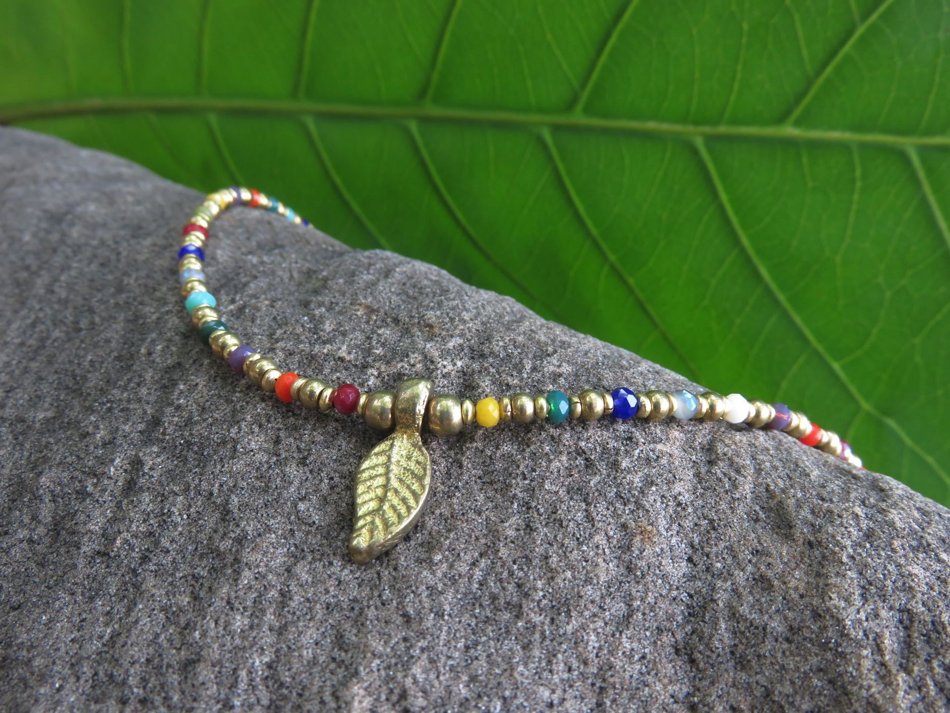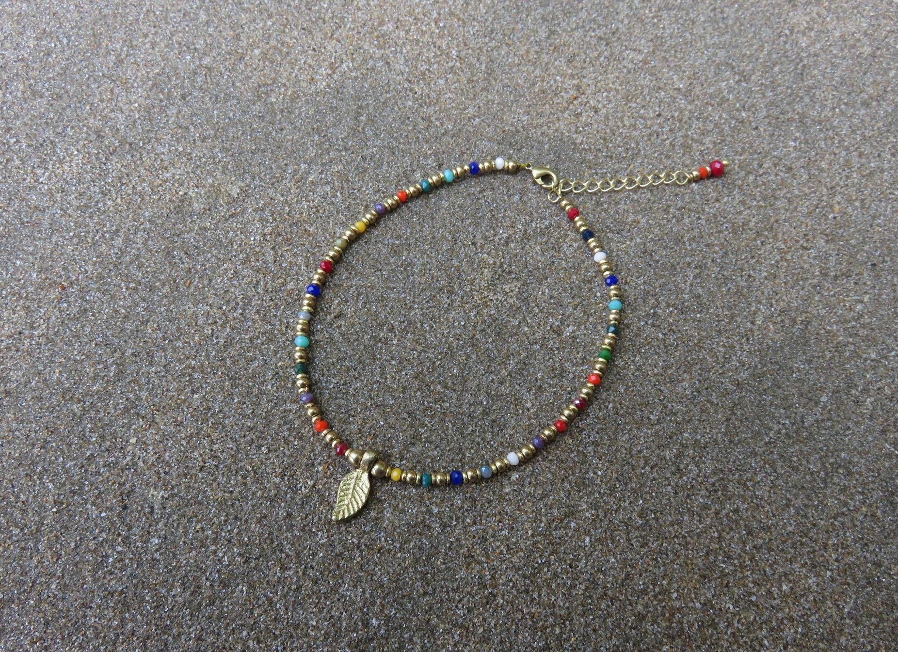 buntes Fusskettchen mit kleinem Blatt aus Messing