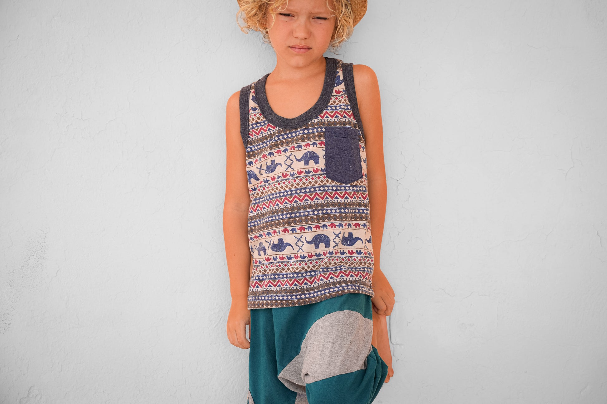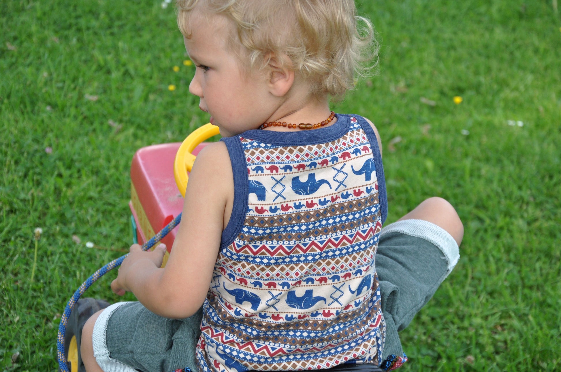süsses Kinder Tanktop mit Elefanten in blau rot beige, Oberteil für Kinder