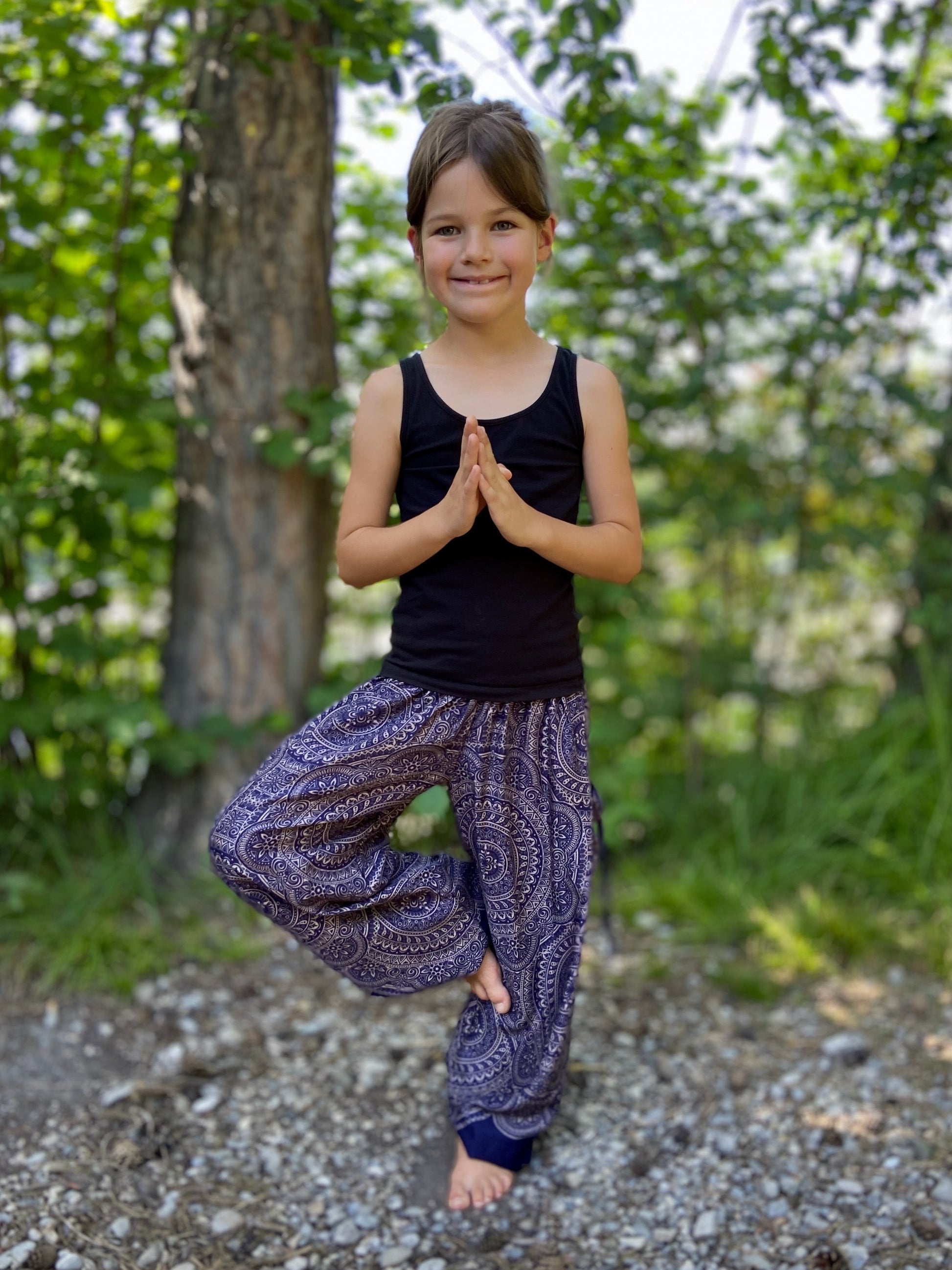 dunkelblau gemusterte leichte Pluderhose für Kinder