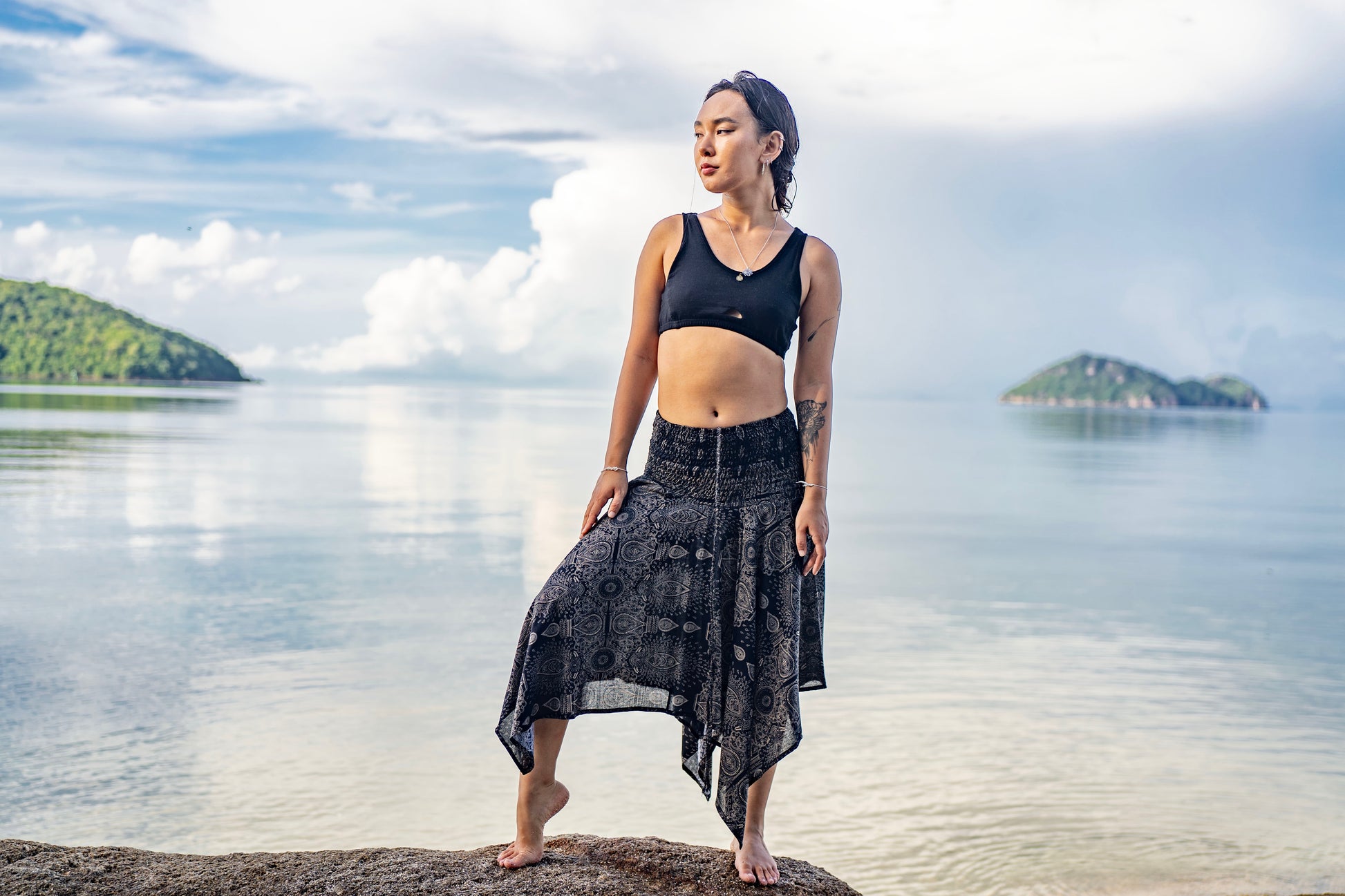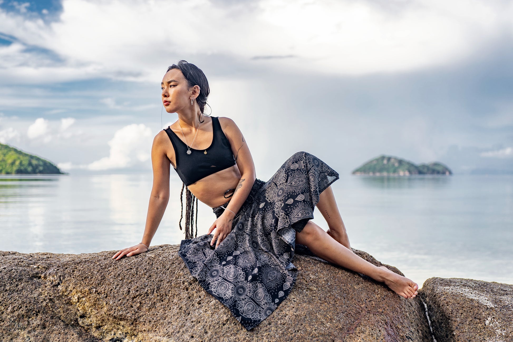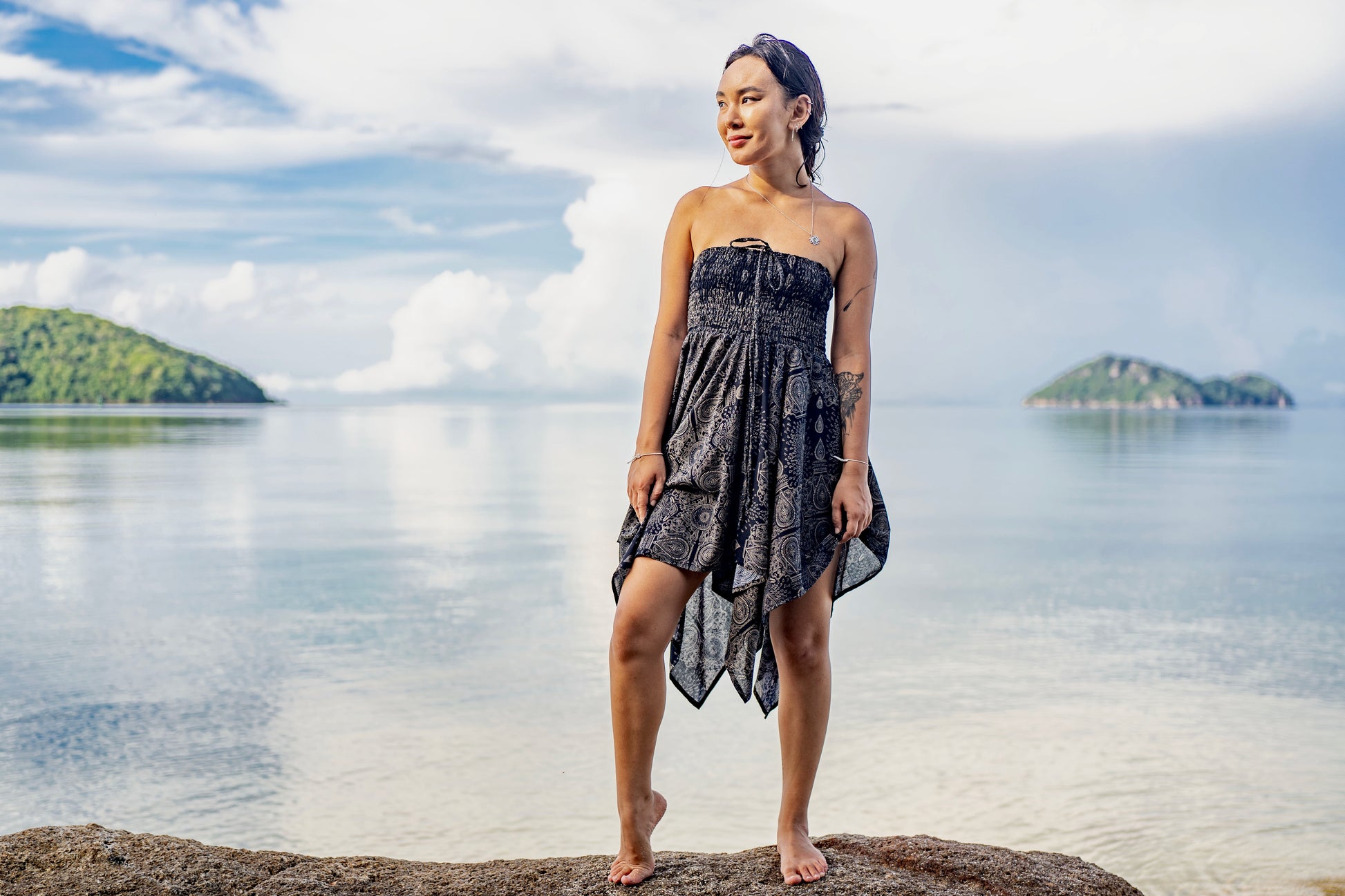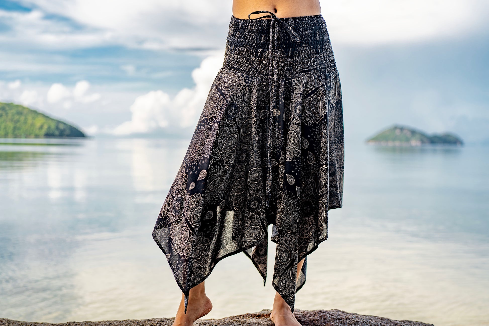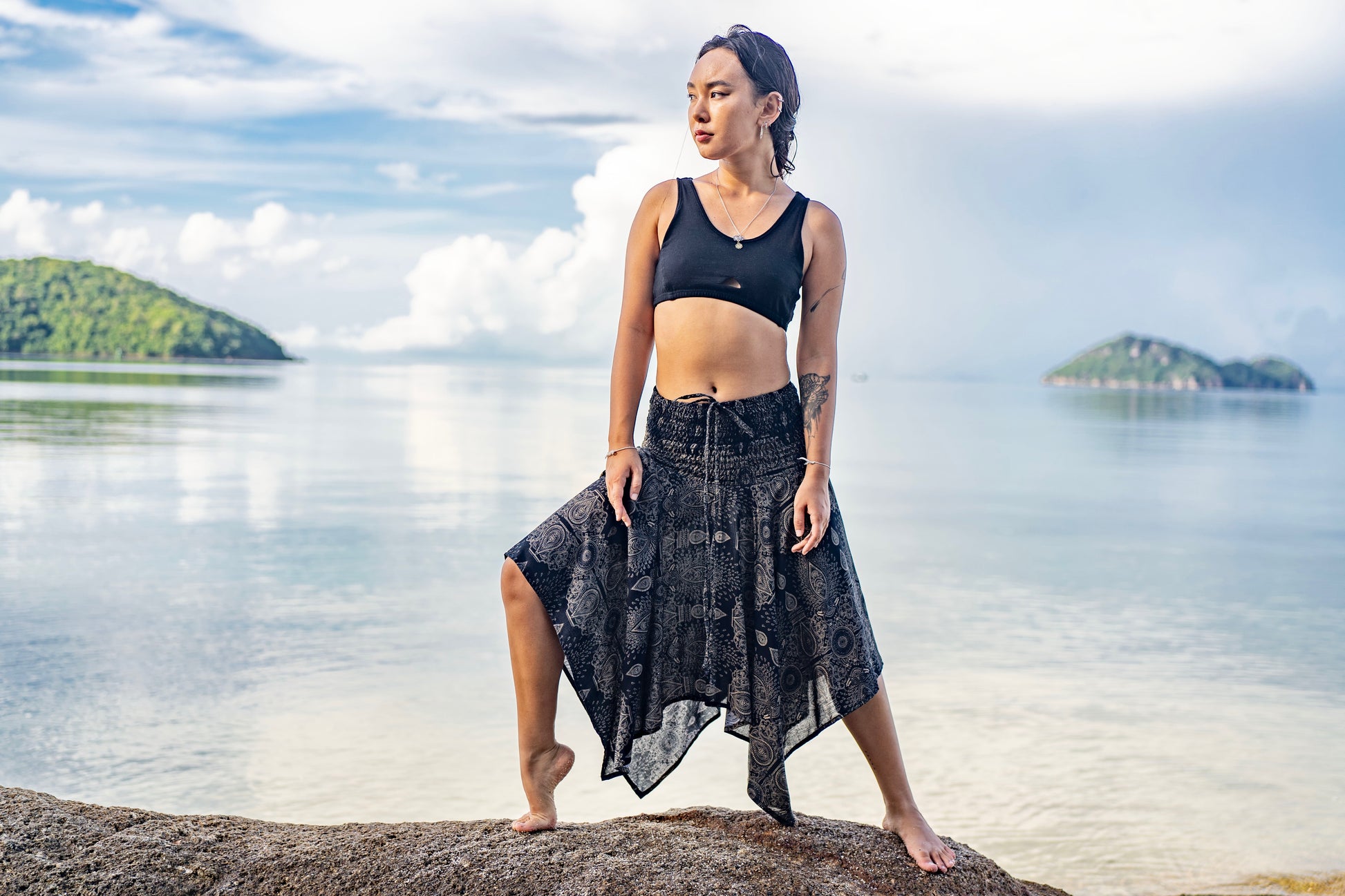 filigran gemusterter Rock mit Fransen in schwarz, Sommerkleid, Elfenkleid, Zipfelrock, Fransenrock
