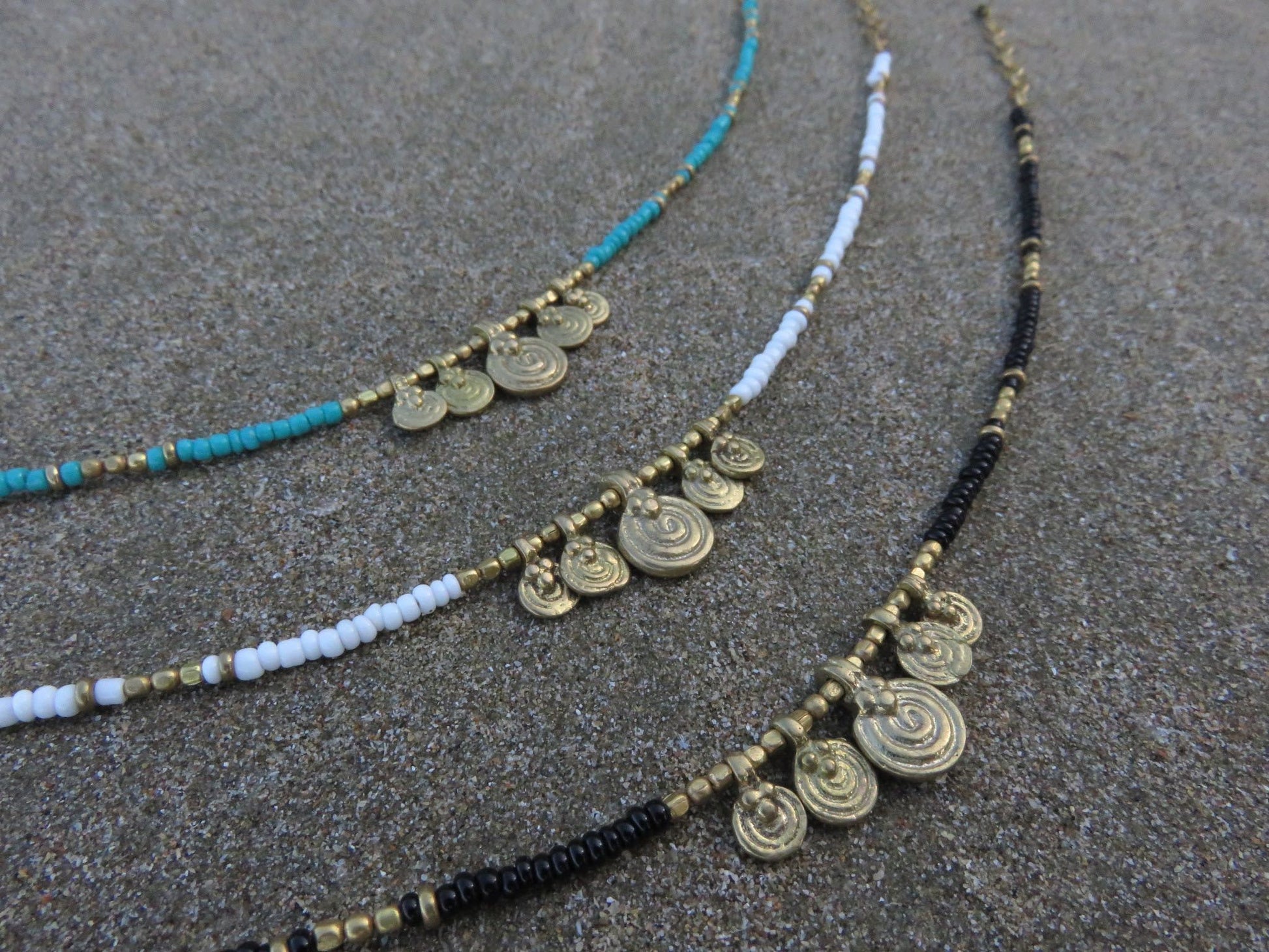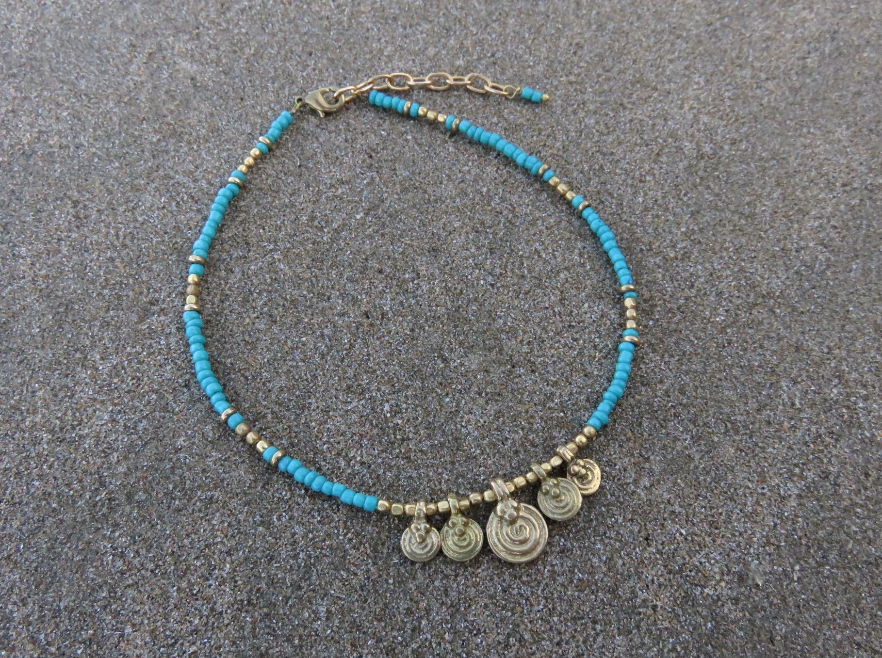Fusskettchen mit kleinen Spiral Anhängern aus Messing