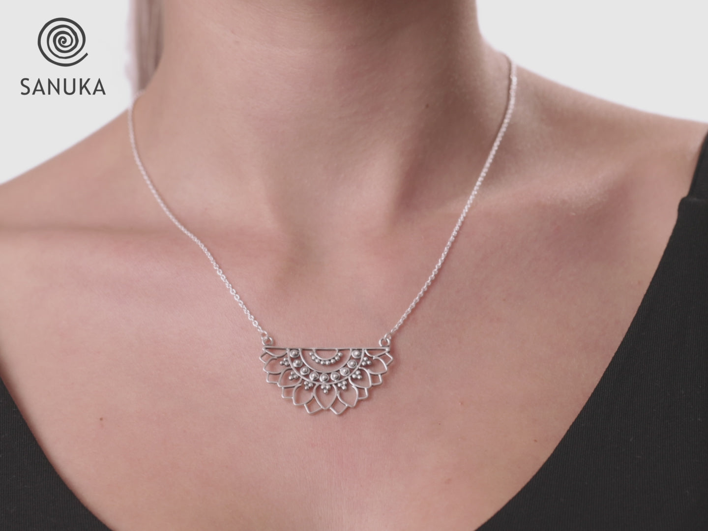 Mandala Kette mit floralem Blumenmuster aus Silber