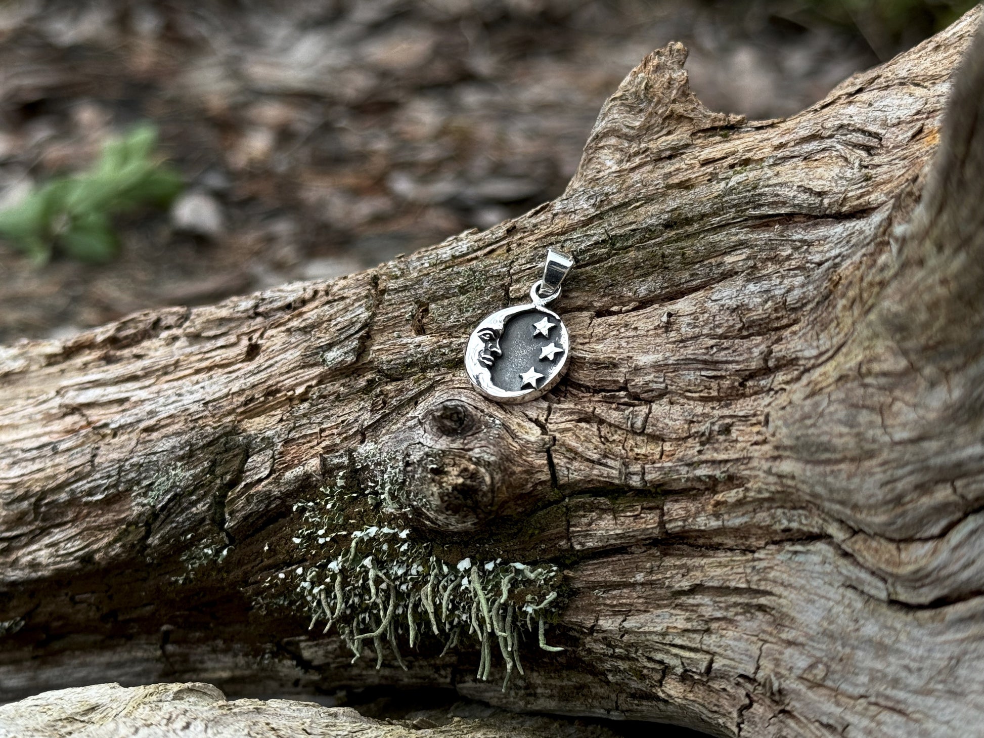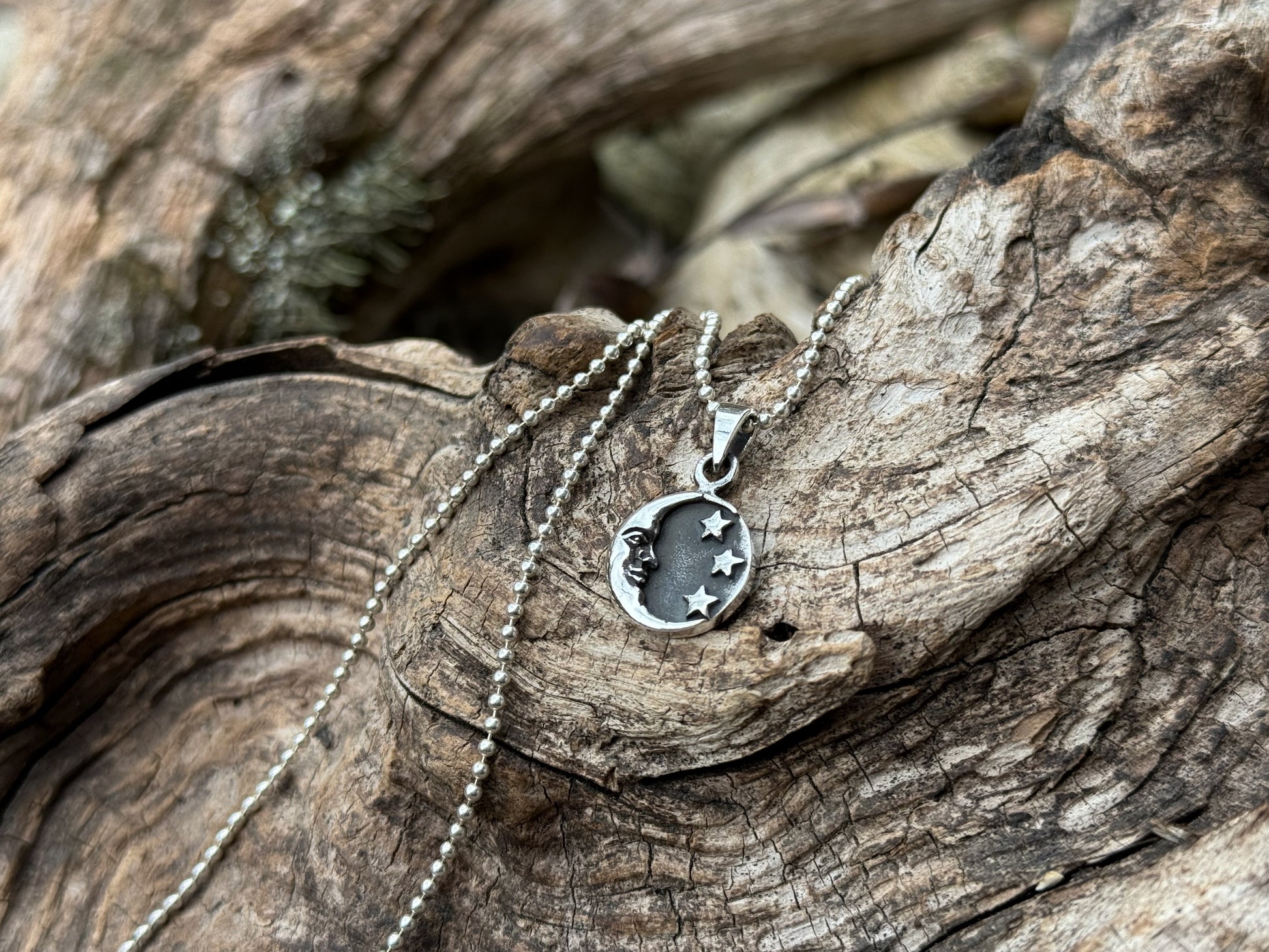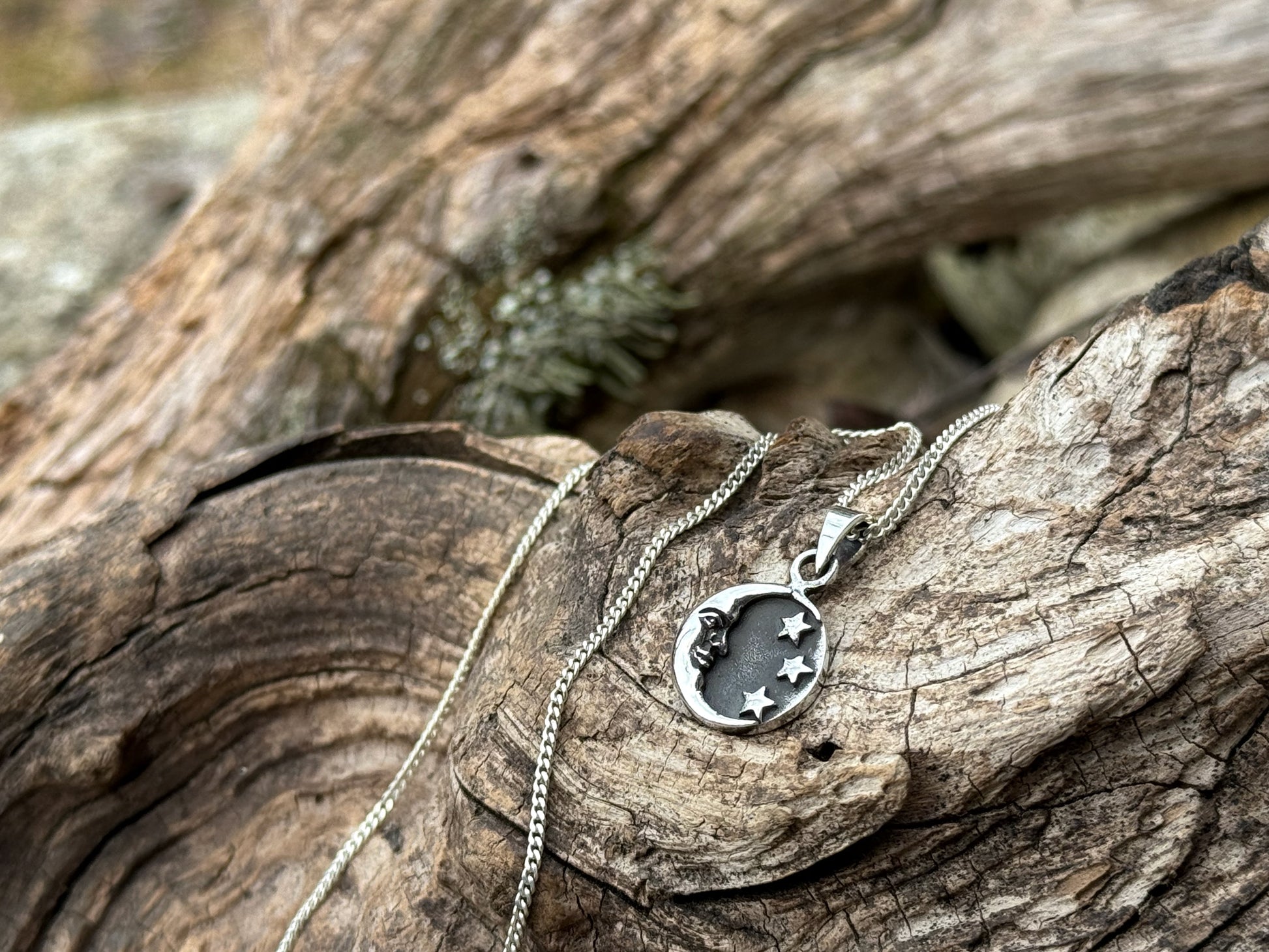 kleiner Mond und Sterne Anhänger aus Silber