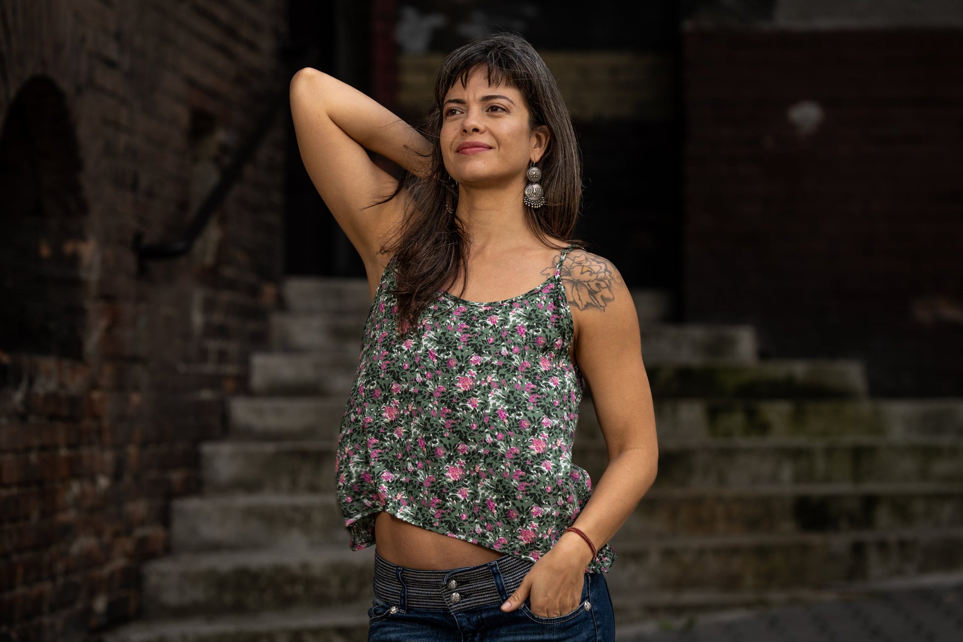kurzes gemustertes Sommertop in rosa khaki grün