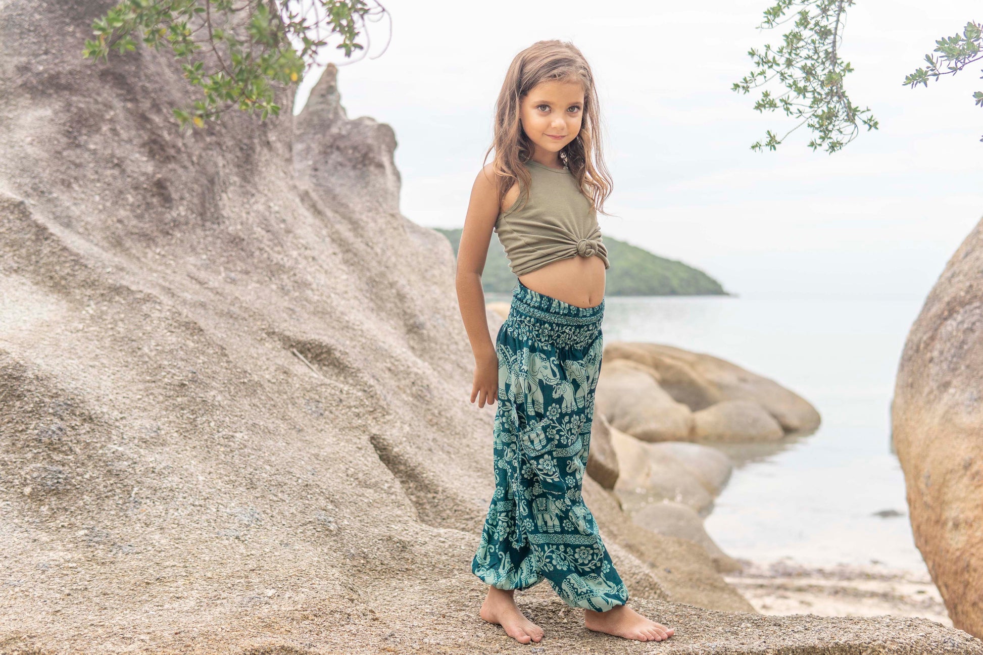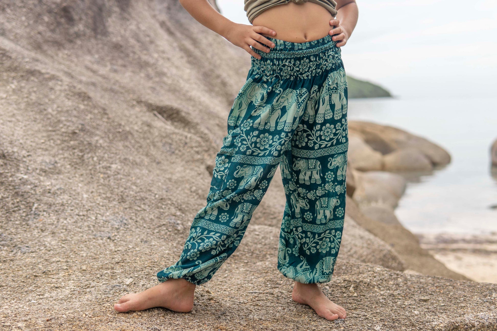 hellblau türkise Pluderhose mit Elefanten für Kinder