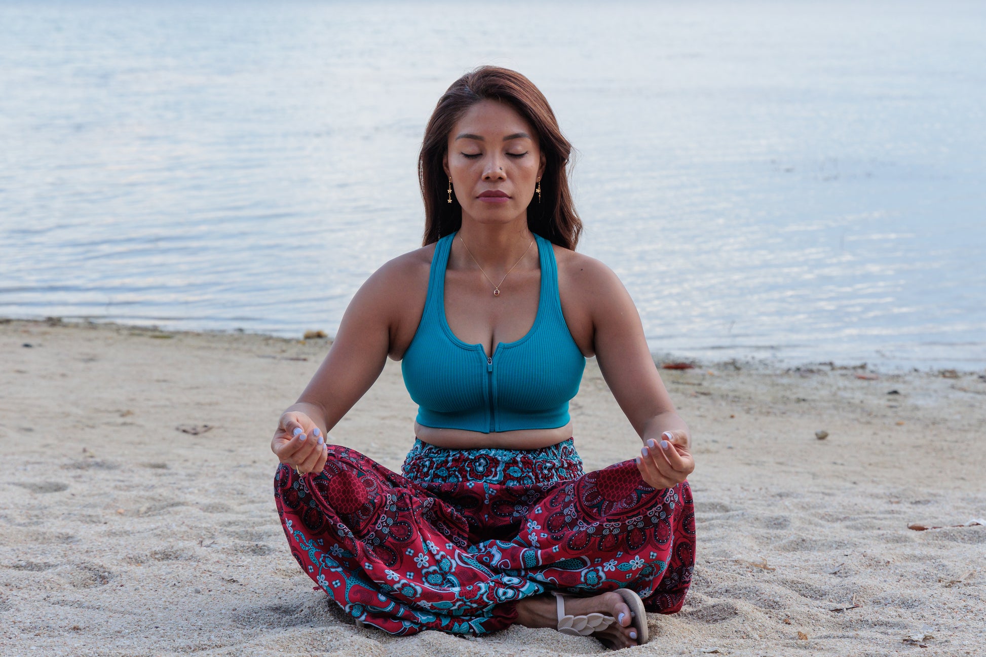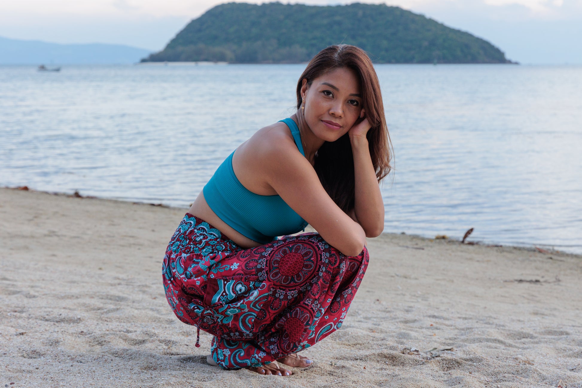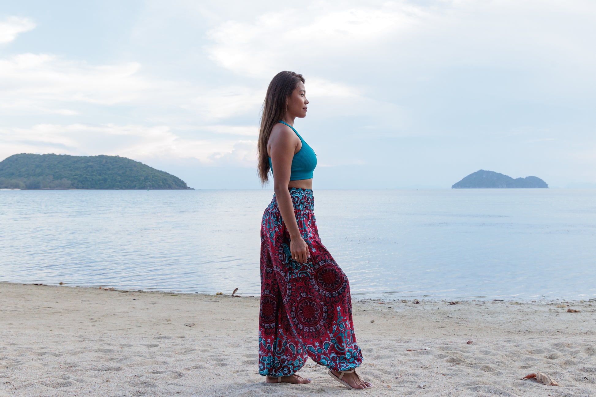 luftige Pluderhose mit Mandalamuster in rot/türkis