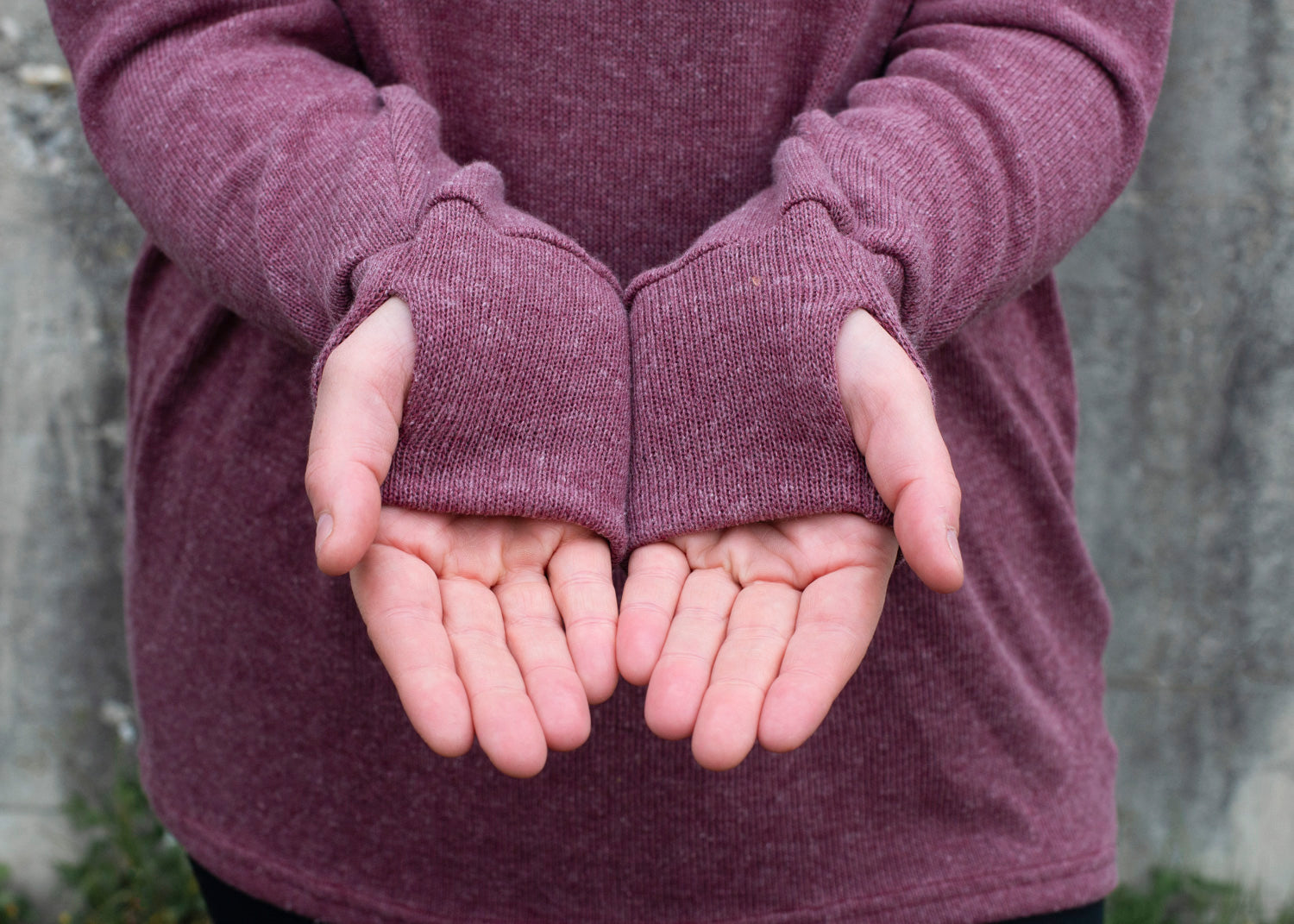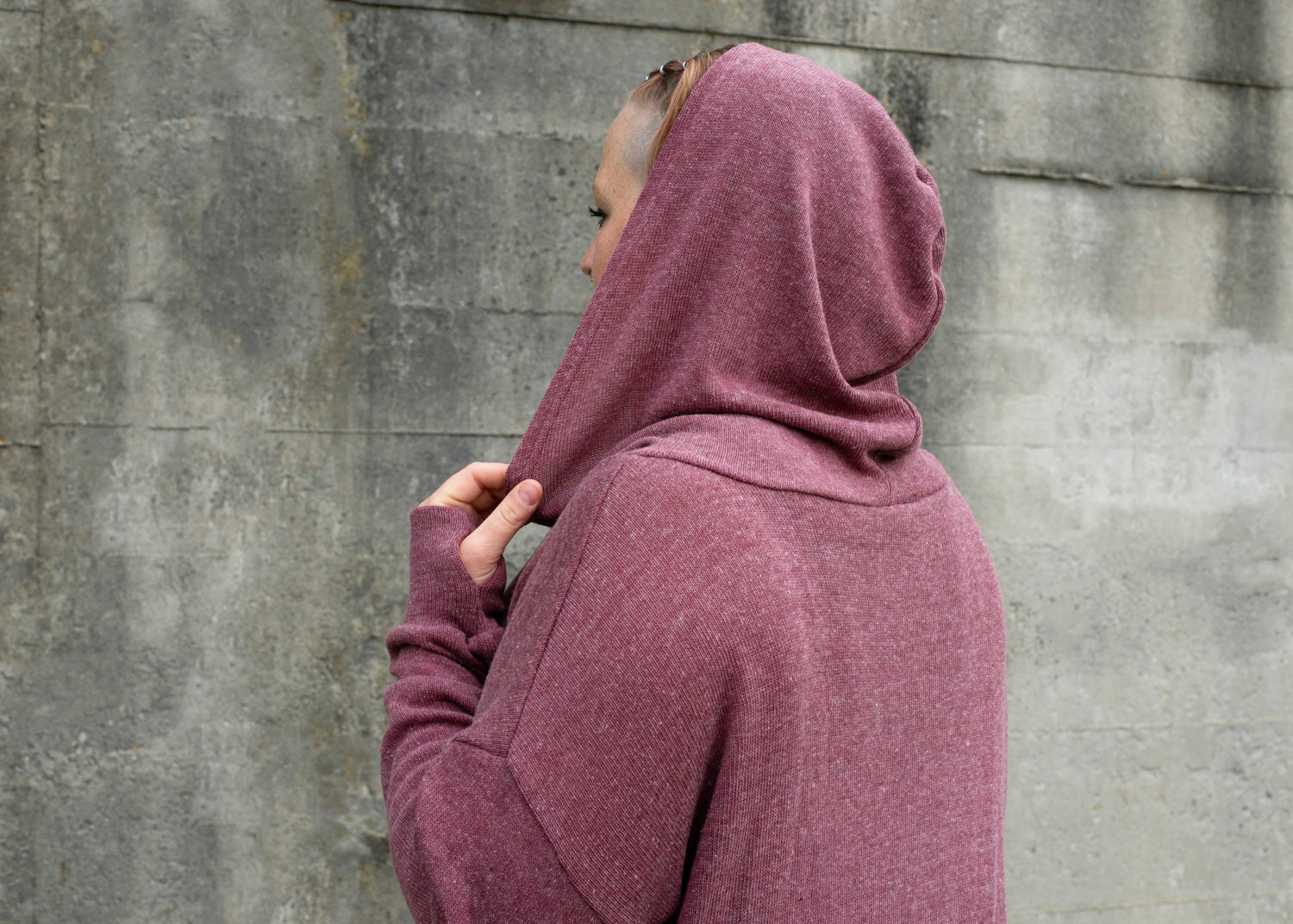 lockerer, gemütlicher, langer Kapuzenpullover in rot mit Daumenloch.