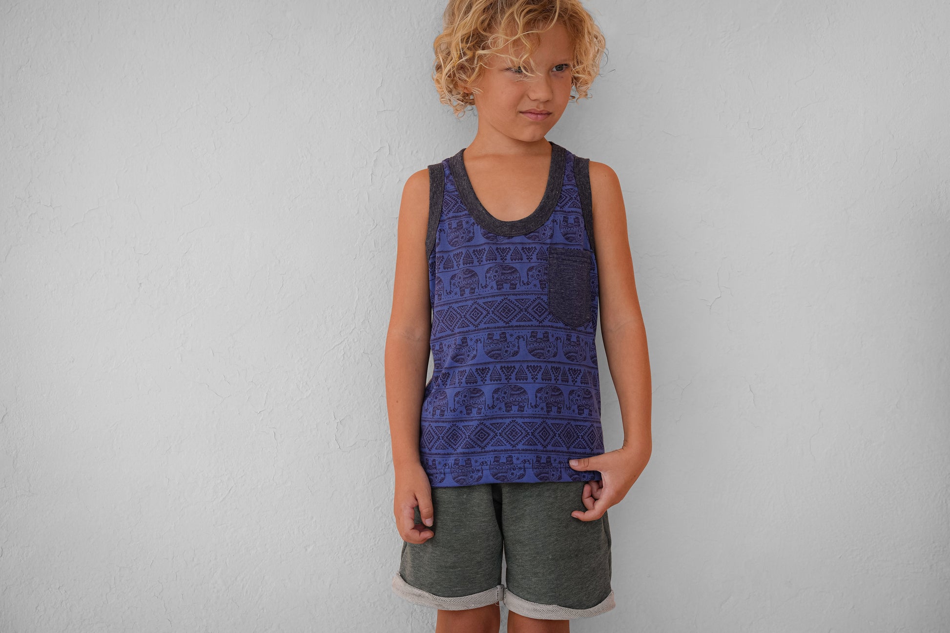 süsses Kinder Tanktop mit Elefanten in blau, Oberteil für Kinder
