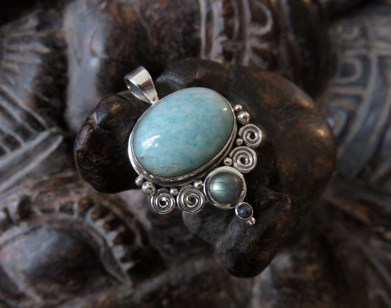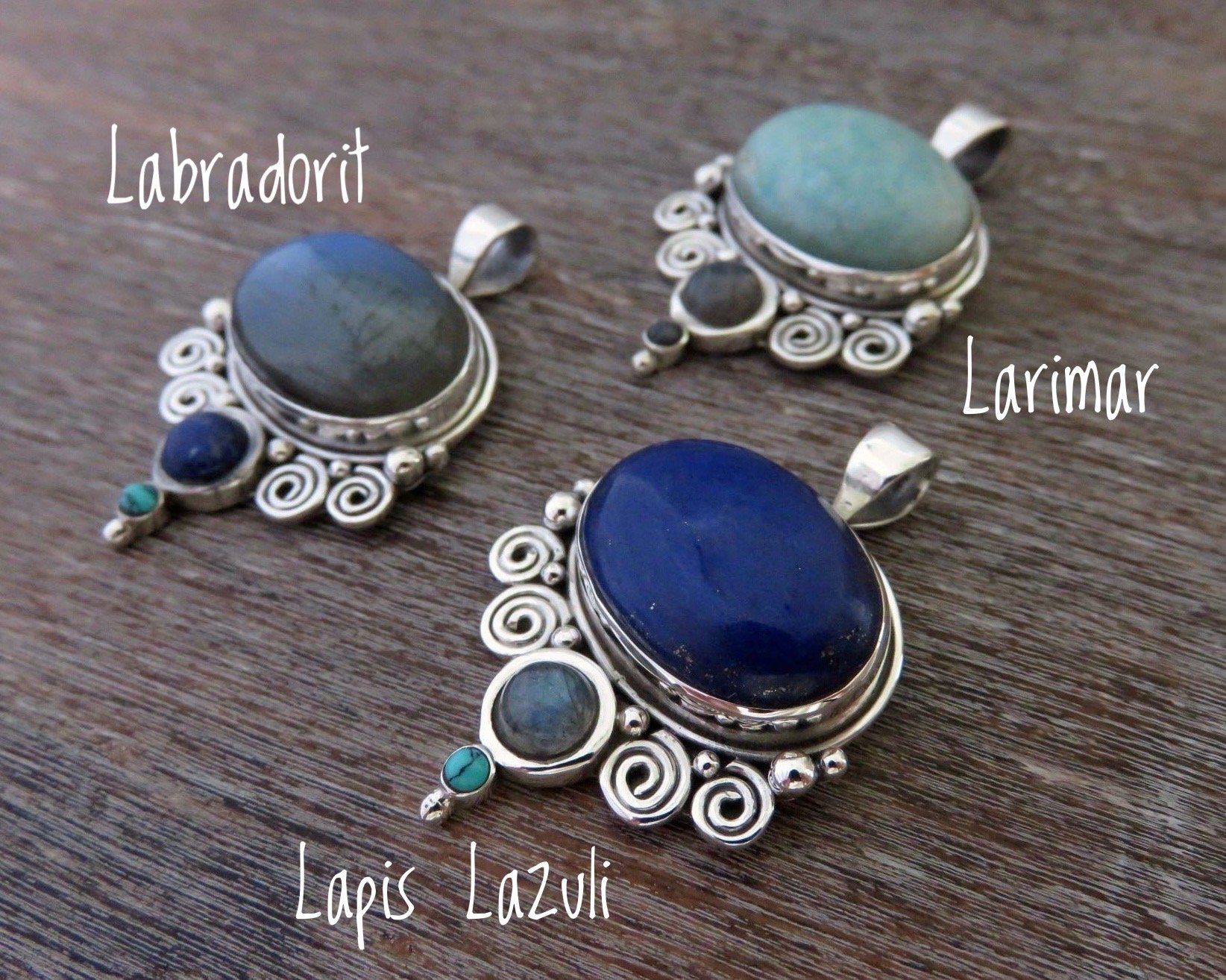 Larimar, labradorite, lapis lazuli