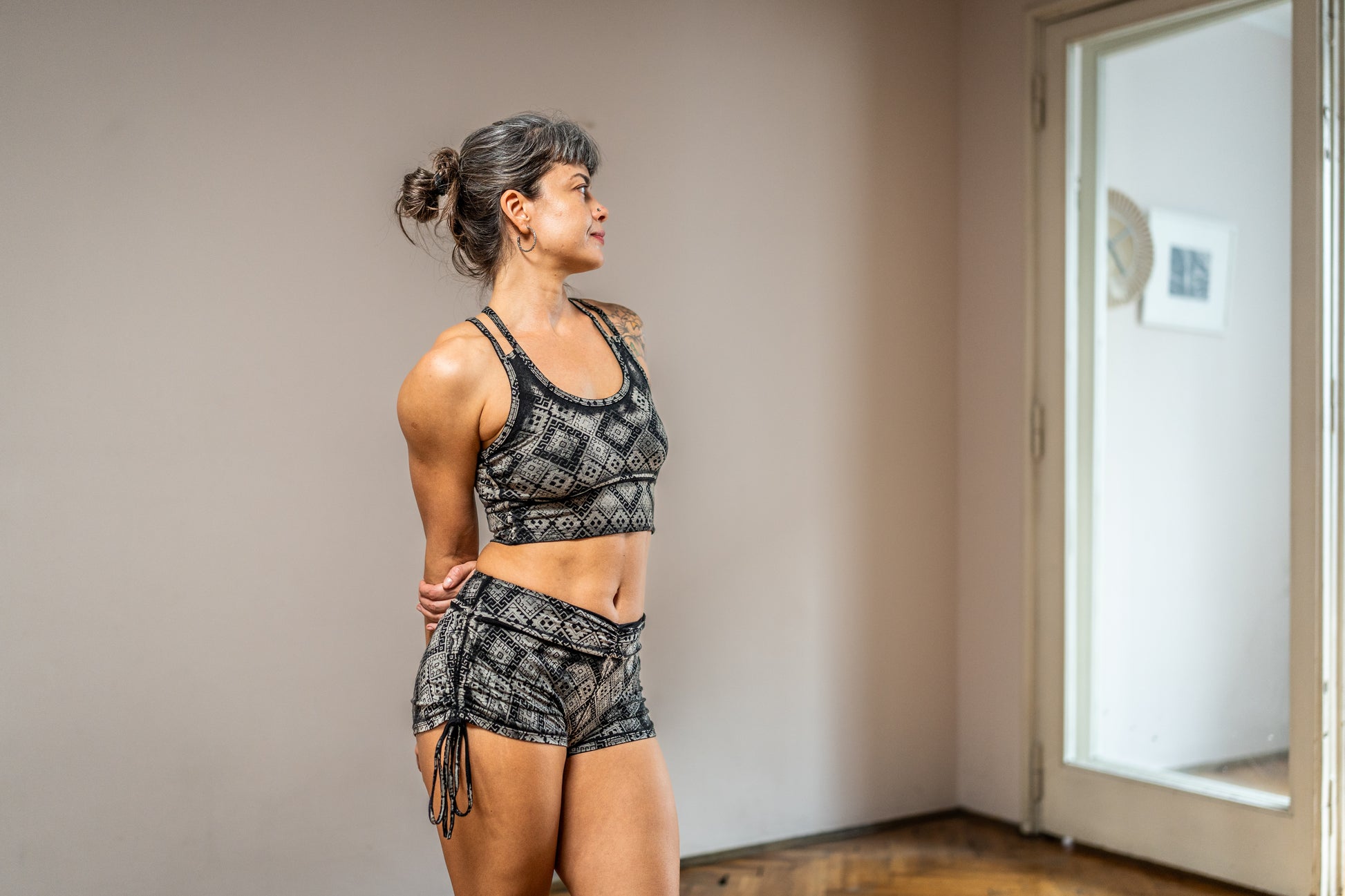 This sports bra is perfect for everyday life, parties, festivals or even for sports. Combined with a backless top or dress, it's a real eye-catcher. You can also find matching leggings in the shop.