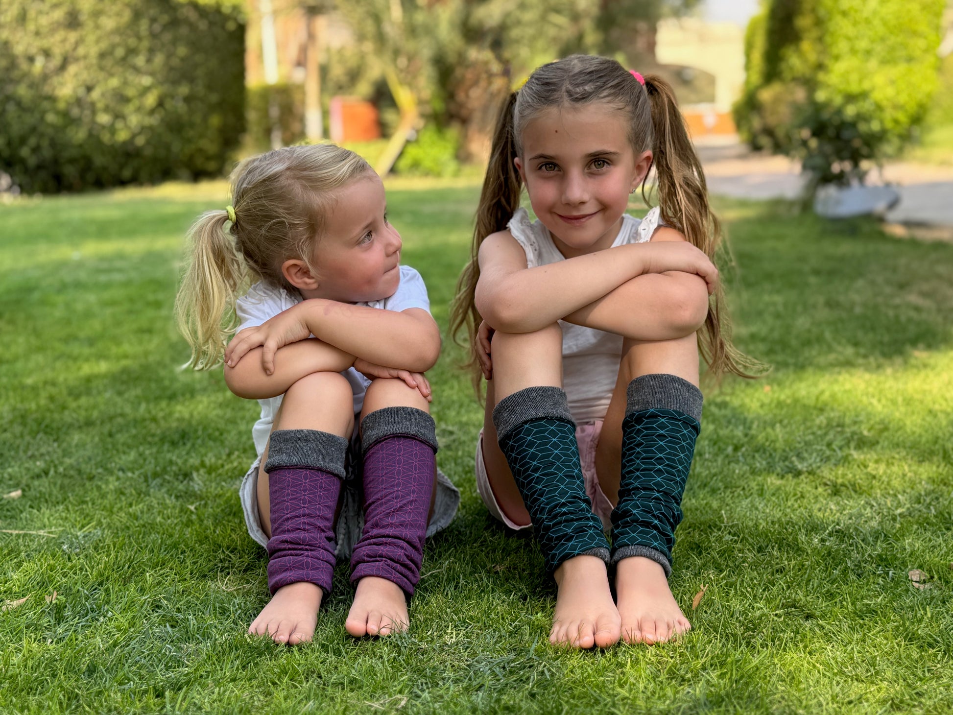 Beinstulpen zum Wenden für Kinder. Die Stulpen können entweder mit der einfarbigen oder der gemusterten Seite nach aussen getragen werden. Jeweils kann ein Teil der Stulpen umgeschlagen werden, so dass du den Look individuell anpassen kannst.
