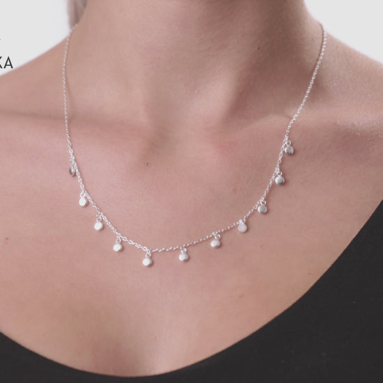 Silver necklace with small dangling round pendants. Can also be beautifully combined with our simple ball chains. (See sample images)